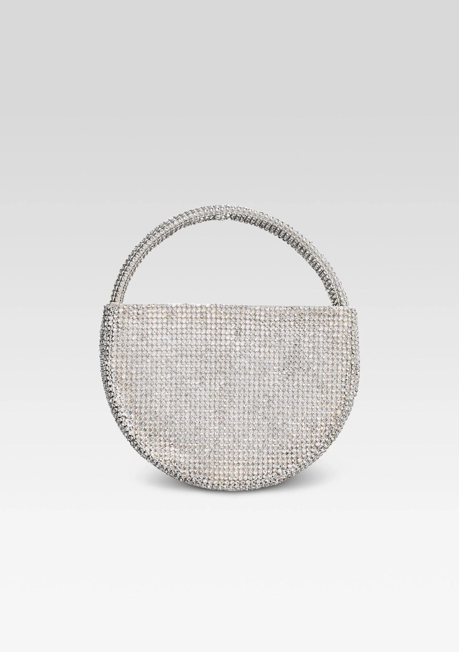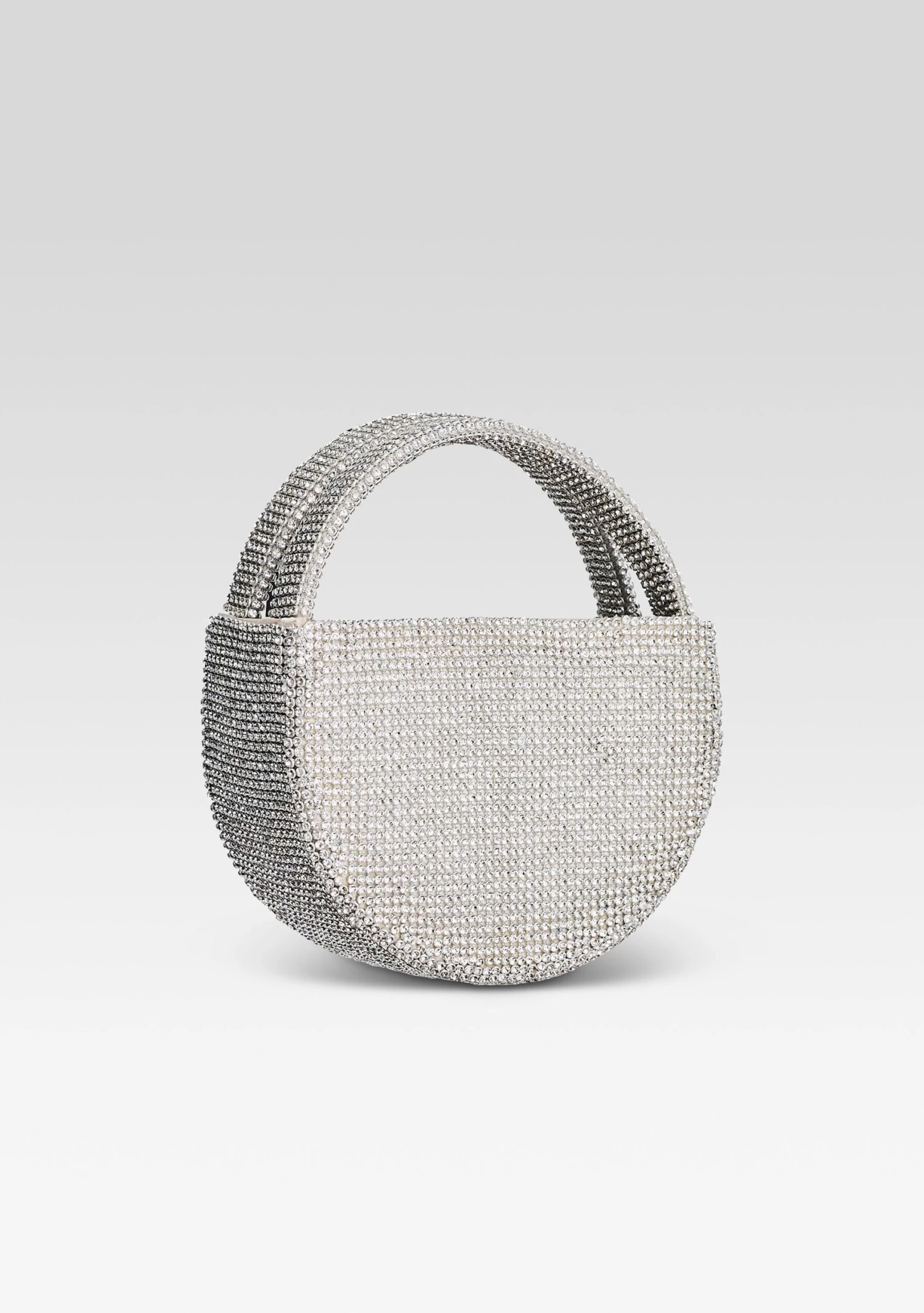 Illuminate your wardrobe with our Betsy Small Crystal Bag featuring bright embellishments and coordinating handle. Shown here in Silver.