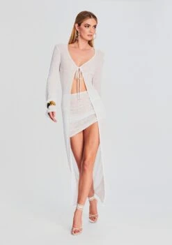 Perfect for layering or as a standalone top, the Dori Top is a chic, silky, scoop neck that combines timeless style with unbeatable luxurious comfort, making it an essential addition to your wardrobe. Shown here in White.