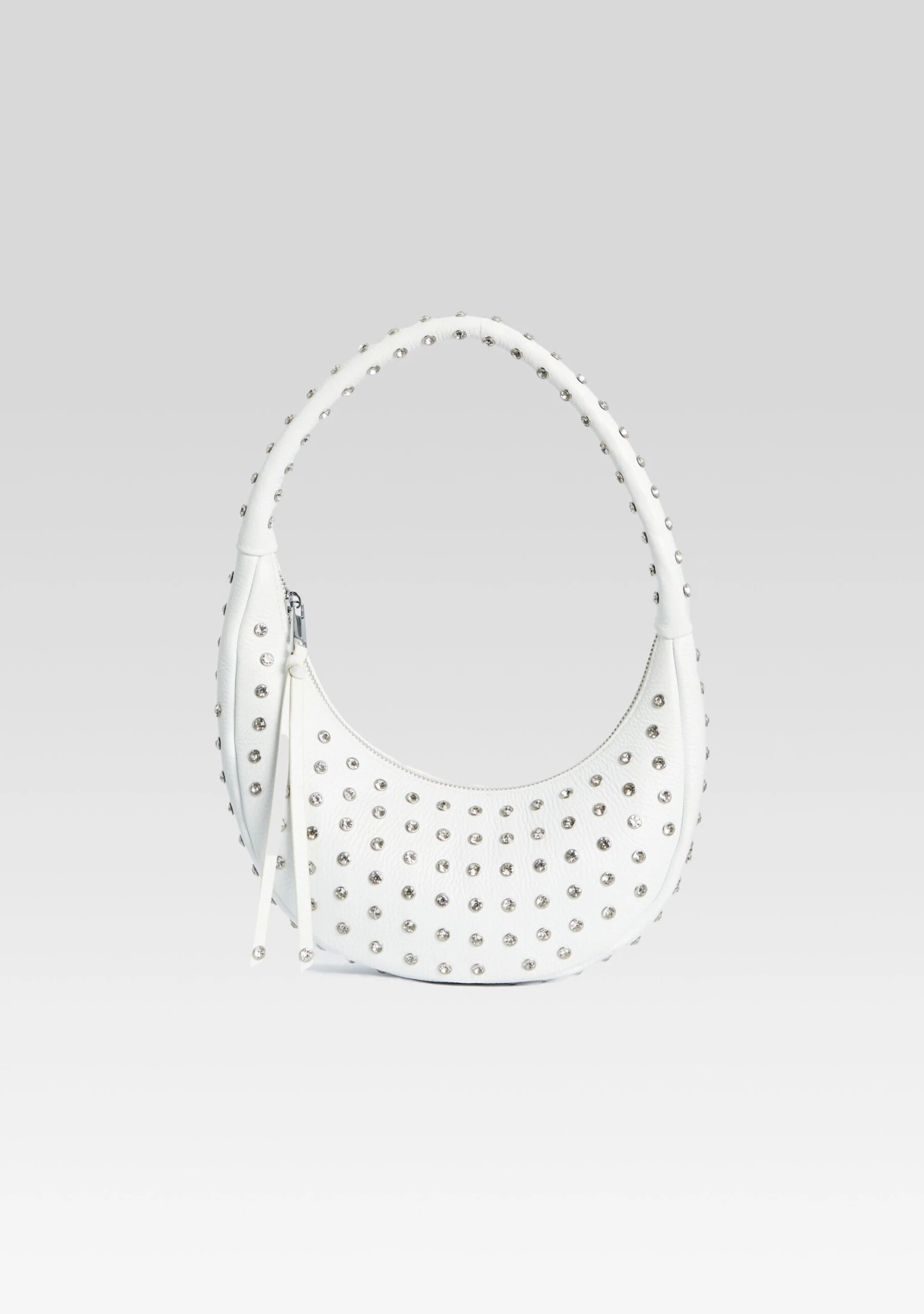 Introducing our ElodieĀ Medium Bag, the ultimate accessory that combines chic and edgy. Crafted with precision and adorned with stylish studded embellishments, thisĀ leatherĀ shoulder bag is designed to make a statement. Elevate your style and carry your essentials in luxury. Shown here in White/Silver.