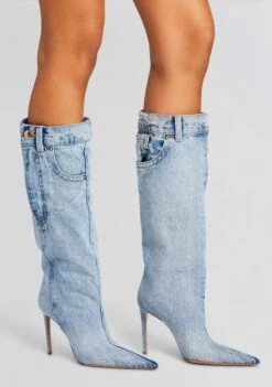 Introducing our Frida Boot- Crafted for those who appreciate the perfect blend of fashion and function, these boots feature a pointed toe and heel that effortlessly transform your look, making a statement with every step. Shown here in Denim.