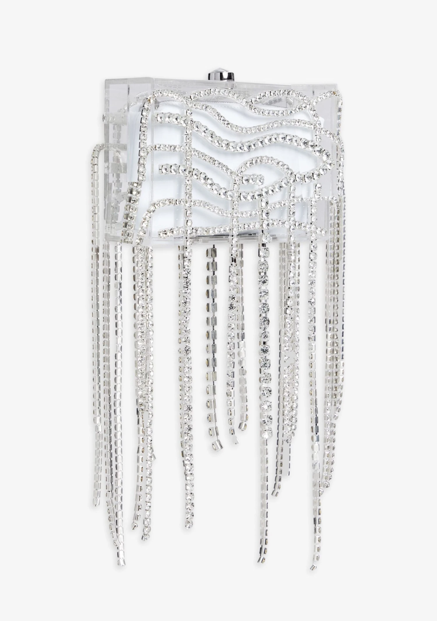 Elevate your style with our Georgina Crystal Bag, a modern and sophisticated accessory perfect for any event or occasion. This exquisite clutch bag is a statement piece that combines the transparency of clear acrylic with the sparkling allure of crystal embellishments, creating a dazzling effect that complements any ensemble. Shown here in Clear/Silver.